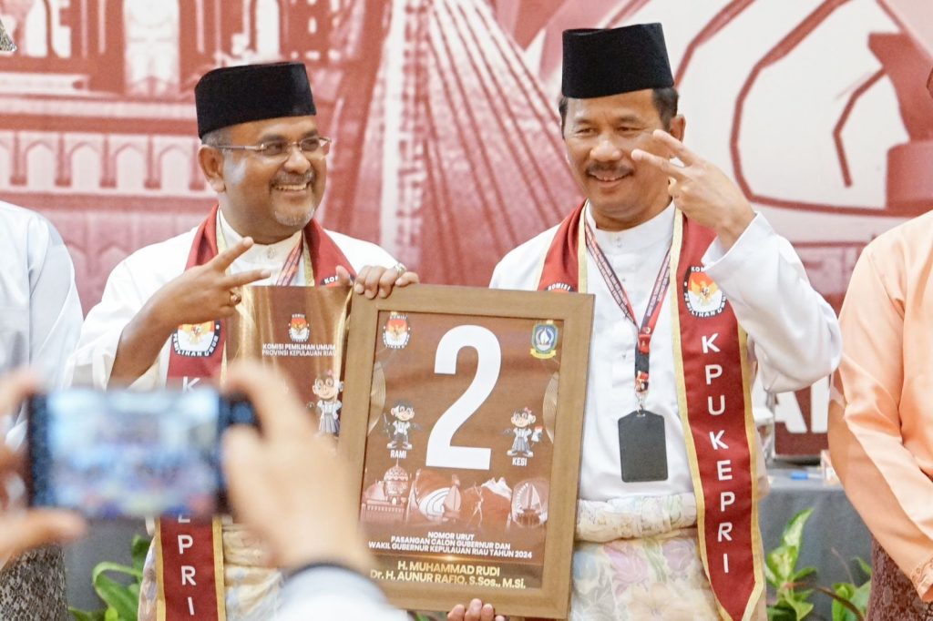 TANJUNGPINANG, Nusantaratoday.net  – Pasangan calon H. Muhammad Rudi – Aunur Rafiq mendapat nomor urut dua untuk Pemilihan Gubernur (Pilgub) Kepri yang akan berlangsung tanggal 27 November 2024 nanti.