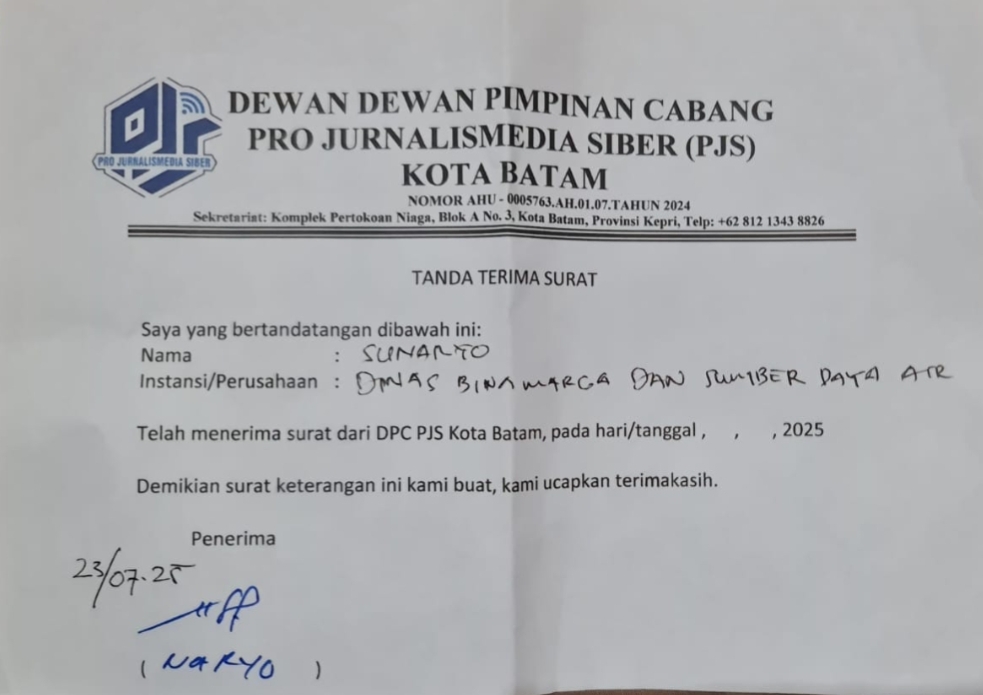 “Surat konfirmasi ini adalah bentuk iktikad baik untuk menjamin hak publik atas informasi dan mendukung pemberitaan yang berimbang. Bila pihak terkait tidak bersedia memberikan keterangan, maka wajar jika publik mulai mempertanyakan akuntabilitas pelaksanaan proyek tersebut,” pungkas Gusmanedy, Amd., di Sekretariat DPC PJS Batam, Rabu (23/07/2025).